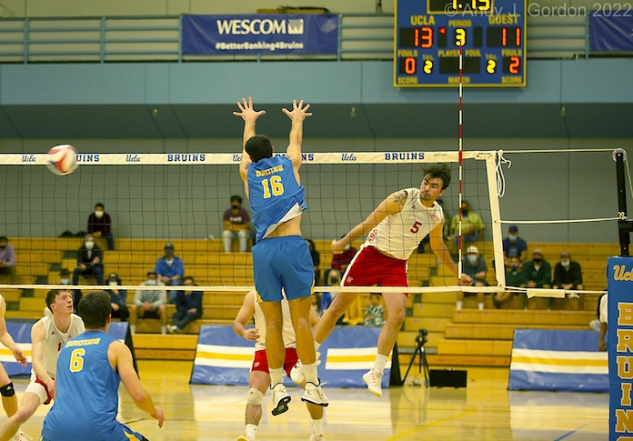 When the UCLA men play in the John Wooden Center, it’s a tough place for photographers. Andy Gordon got the cool shot nonetheless: