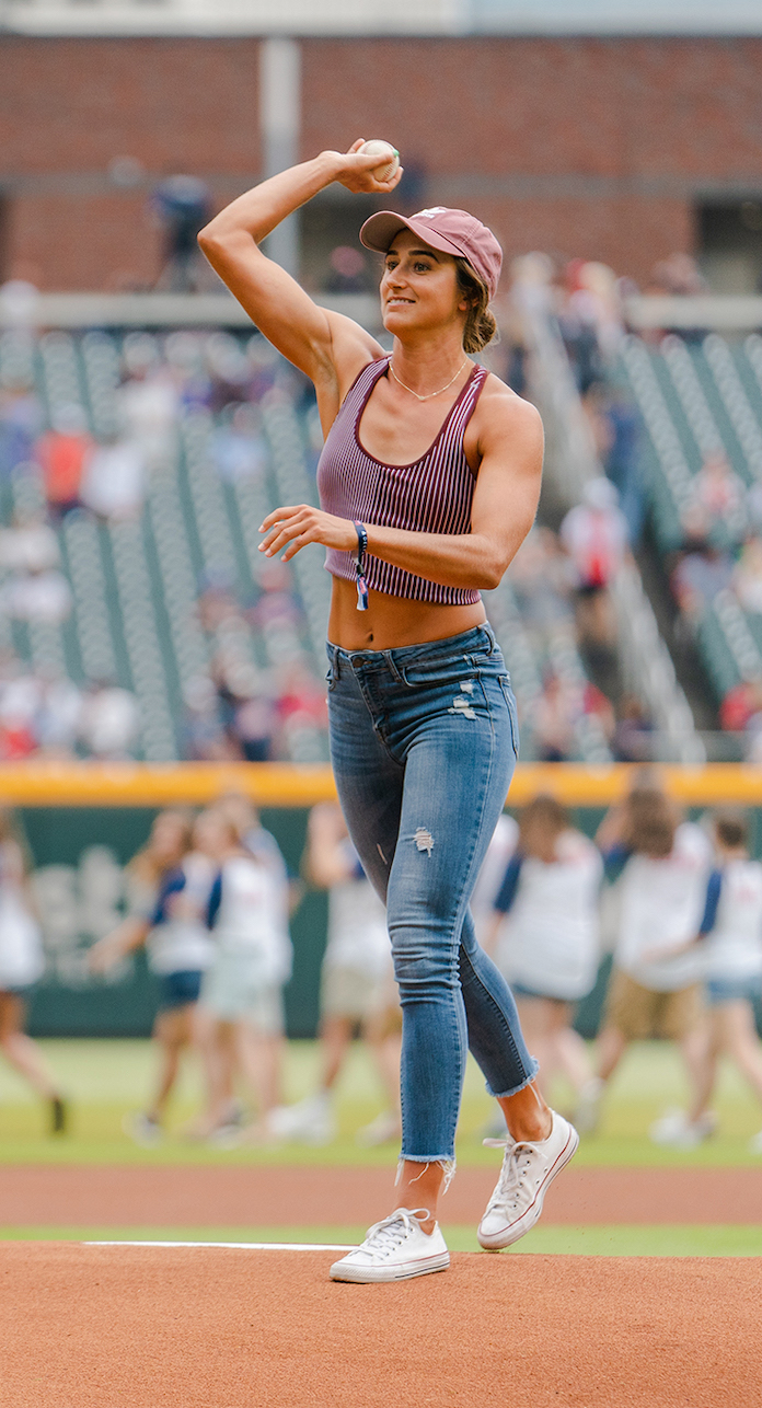 Sarah Sponcil threw out the first pitch Wednesday before the Braves lost to the Phillies.Â