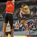 With the finish line in sight, Chase and Miles needed just 25 minutes to put a 15-11, 15-8 beatdown on the Launch’s Tim Bomgren and Troy Field (2-6), who had rebounded from a disastrous first set to trump Billy Allen and (a hobbling) Paul Lotman of the Aces in three (7-15, 15-13, 15-9) the night before. Former NBA player Budinger rose to the occasion in the must-win situation with 11 kills on 14 errorless attacks (.786), one block and three digs.