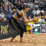 Urango and Rodriguez stepped up again against the Launch’s Betsi Flint and Julia Scoles (3-5) pulling out a second three-set victory (15-13, 12-15, 15-11), and eliminating the LA team from playoff contention. They broke open 12-8 separation in the tiebreaker on a tape-snake ace by Rodriguez and Toni’s rejection of Scoles’ option attempt, then scored the match-winner on a darting hybrid-float service winner by Rodriguez that Julia could touch with only one arm.