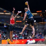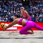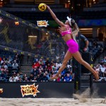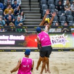 On Saturday night, Humana-Paredes and Wilkerson again demonstrated their poise by holding off USA Olympians Kelly Cheng and Sara Hughes of the Nitro 11-15, 15-13, 15-13. The reigning world champions got out to a 6-3 lead in the tiebreaker, but that was erased on Mel’s high-line shot, Brandie’s straight-down “take-out-the-trash” kill on an overpass and a hitting error by Cheng that flew long. The count remained knotted through 12, and the Passion pair went up 14-12 on Wilkerson’s deep middle-to-middle topspin jump-serve ace. Humana-Paredes sided-out on a blast down the line to end a battle that has been called an instant classic.