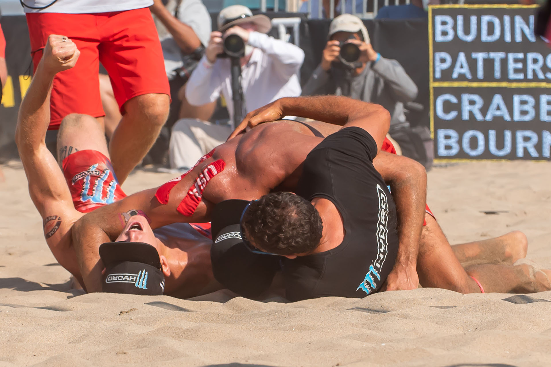 Andy Benesh goes down in a cloud of sand/Ed Chan, VBshots.com