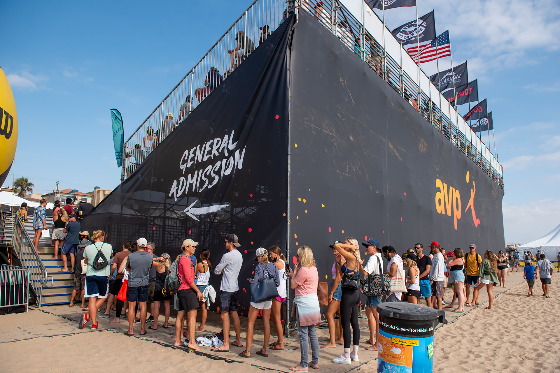 Fans line up to get into the AVP Manhattan Beach stadium/Jim Wolf photo