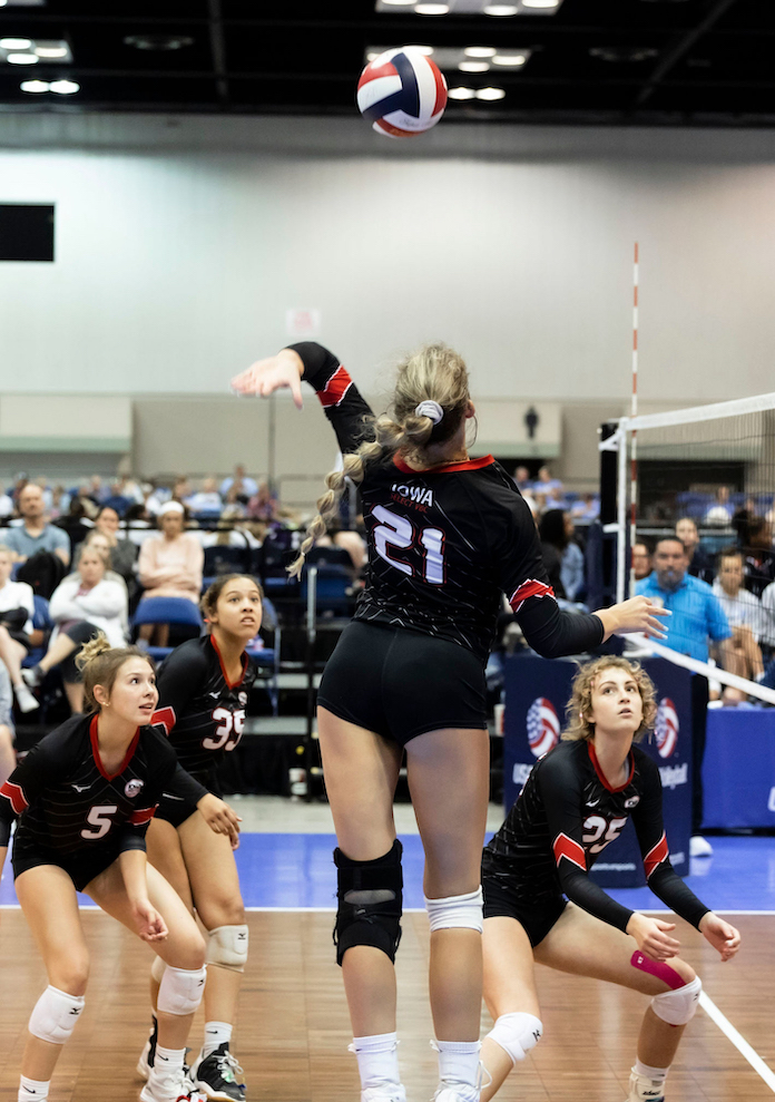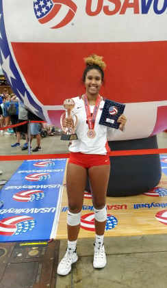 RS: Kamryn Chaney, 6-2 Junior, 1st Alliance 17 Gold (IL) — When it mattered most – Day 4 of Junior Nationals – Chaney was absolutely beastly. She tallied 35 kills, attacking at a .401 clip, and led her team in blocks as she slowed some of the best outsides in the country while leading her team to the 17 Open national championship. “Her dominant presence greatly assisted the rest of the team, as teams started to commit block to her side,†noted coach Danielle Mikos. “This opened up seams for our outsides and middles to score. Watching how Kami’s positive and confident energy influenced everyone else on the court was amazing!â€