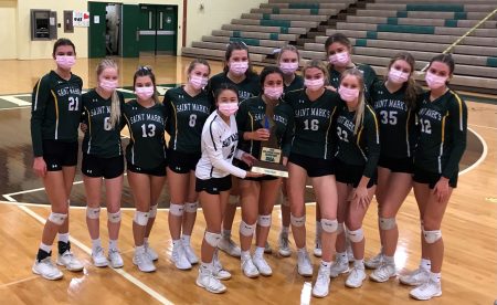The championship match was played at St. Mark’s, not on the campus at the University of Delaware as is the tradition. Because of the virus, there were no students present, only two members of each player’s family. That did not stop St. Mark’s (15-0) from sweeping to the win. Sophomore Julia Yurkovich led the way with 17 kills and 13 digs. She delivered the title-clinching kill in an overscore third set, the only set that was decided by fewer than eight points. Mya Lewis aided the Spartan cause with 18 assists, 12 kills and seven digs.