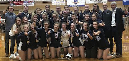 Trinity defeated Philipsburg-Osceola to claim its first state title, winning in four sets for the Class 2A title. One year after making the semifinals for the first time, the Shamrocks went all the way and finished undefeated to boot!