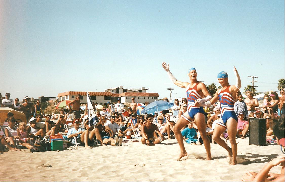 One of the earlier tourneys featured partners Pat Turley and Dik Johnson, who came in a 1932 Cadillac as the comedian duo of Laurel and Hardy, wearing the “old time†swimsuits of the 1920s. A few years later, the same guys one-upped themselves.Â