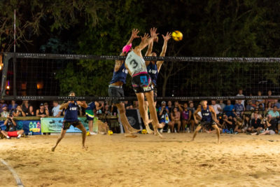 On the opposite side of the net in the 4-man final, Team AVP California featured Casey Patterson, Troy Field, Jeremy Casebeer, and Chase Budinger. Patterson set and provided the smack talk and celebrations, while Field scored the occasional jaw-dropping over-the-top kill, Casebeer brought it from the service line, and Budinger did his best to slow down the trigger-happy pin hitters on the opposite side of the net. But even that combination of talents wasn’t enough to overcome the Hawaii squad.