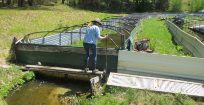 It’s dinner time and the water begins to bubble as Jen Kessy tosses bunches of fish food into pool after pool of trout.