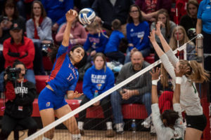 On offense, the Jayhawks’ top two scorers were underclassmen: Elnady (2.83 kills per set) and Bien (2.51). Sophomore London Davis, a 6-foot outside from Galena, Ohio, adds 1.83 kills per set.
