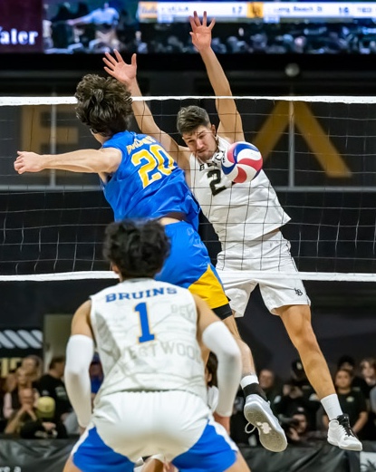Sotiris Siapanis led the Beach with 18 kills, an assist, two aces, three blocks and five digs. Skyler Varga had 15 kills, hit .480, and had two blocks and five digs. Mason Briggs had 11 digs and four assists. UCLA’s Ido David had 15 kills and Merrick McHenry 11, hitting .600, to go with six blocks.