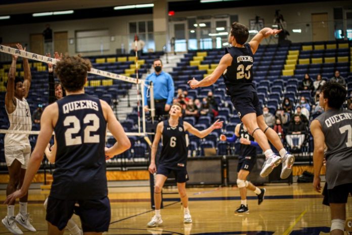 Queens (4-3) won twice last weekend. On Friday, the Royals swept Barton College of Conference Carolinas, and then Saturday beat Charleston of the EIVA in four. Jack Brinkman had 18 kills, hit .351, and had an ace and five digs.Â