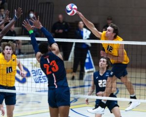 Grand Canyon (9-0) of the MPSF beat visiting UC Irvine (7-2) of the Big West 25-19, 25-19, 12-25, 25-22 as the Lopes hit .415. Jackson Hickman led with 13 kills and hit .524 and added two assists, two aces, two solo blocks and two digs. Christan had 10 kills, an ace, a solo block and six digs . GCU had eight aces, three by Camden Gianni, ahd 17 errors. Francesco Sani had 13 kills for UCI, Hilir Henno had 11 kills and William D’Arcy had nine kills in 13 errorless attacks. UCI hit .333 and had seven aces and 17 errors …