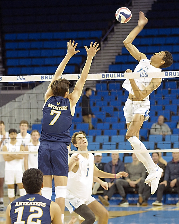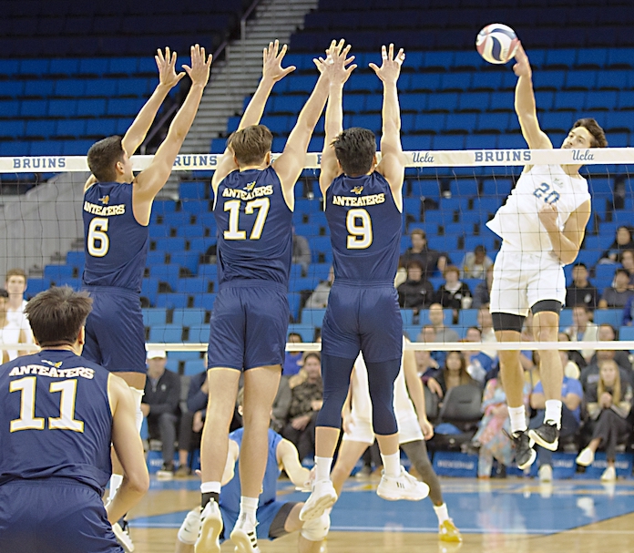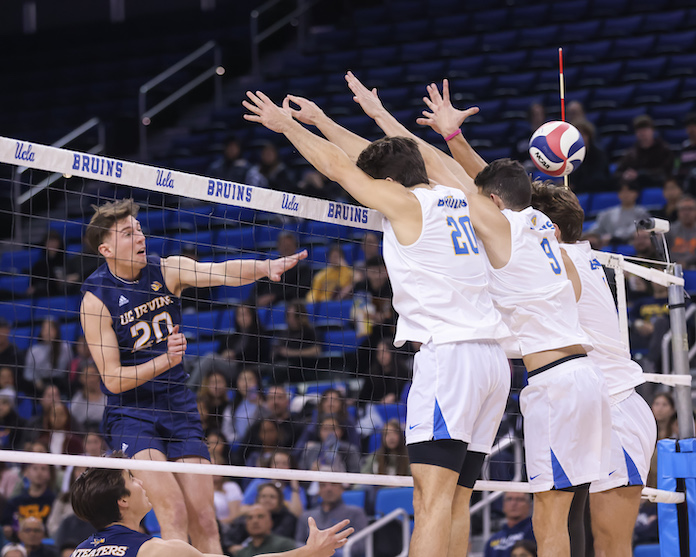 Second-ranked UCLA beat visiting UC Irvine on Sunday in one of only three matches on the NCAA Division I-II men’s volleyball schedule.