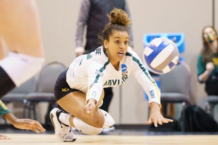 The Bears, who hit .141, had only 31 kills. Yossiana Pressley led with almost half of them, 15, and she had two assists, five digs, and a block.