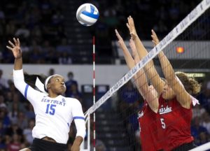 TOP 25: Nebraska (8-1) in essence went on the road for the first time and won 27-25, 25-20, 25-16 at Kentucky (5-4). Whitney Lauenstein led a balanced attack in which seven Huskers have four or more kills. Lauenstein, establishing herself as an early season star, had 11 kills with one error in 27 attacks to hit .370 and added two aces, three blocks and two digs. Madi Kubik and Lindsay Krause had nine kills. Kaitlyn Hord had five kills and four blocks, one solo, and Bekka Allick had five kills in eight errorless tries, four digs and six blocks. Nebraska hit .302. Kentucky, which hit .141, got nine kills from Reagan Rutherford, who had an assist, an ace, a block and 12 digs. Adanna Rollins and Erin Lamb had eight kills each. Nebraska, which is 6-1 at home, also won in Omaha against Creighton, so technically the Huskers had traveled …Â