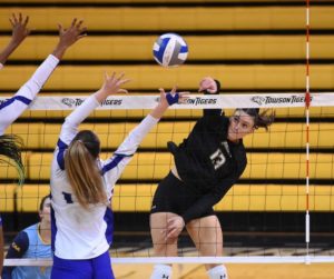Towson swept Hampton for the second straight day, as four players had nine or more kills. Nina Cajic had 10 kills, hit .381, and added an assist, a block and four digs … Delaware got the career-high 35 kills from Lani Mason in its four-set win over Northeastern. Mason, a senior outside, also had an ace, a block and 10 digs.