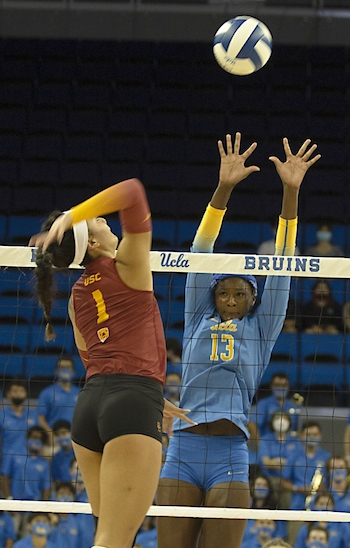 No. 19 UCLA (8-1) beat visiting USC (4-6) 25-21, 25-20, 21-25, 25-14 as the Bruins hit .333. Charitie Luper had 19 kills with three errors in 39 attacks to hit .410. Mac May had 13 kills. Brooke Botkin led USC with 18 kills. USC hit .179 …