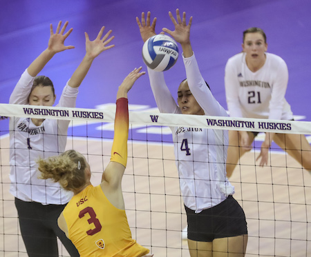 Stanford (8-4, 3-1) swept Arizona (11-4, 3-1) 25-15, 25-18, 25-16. Kendall Kipp led with 12 kills, hit .348 and had two aces and three blocks … Utah (10-3, 3-1) beat Oregon (12-2, 3-1) 25-21, 16-25, 25-15, 25-19. Dani Drews led Utah with 19 kills, a solo block, and 11 digs … No. 13 Washington (9-3, 2-2) hit .377 as it beat visiting USC (6-7, 2-2) 22-25, 25-20, 25-13, 25-19. Claire Hoffman led with 15 kills, hit .361, and added two blocks, Samantha Drechsel had 13 kills and hit .348 to go with two assists, two aces, three blocks, and seven digs, and Emoni Bush had 12 kills and hit .385 to go with four blocks. Ella May Powell had three kills in four errorless tries, 42 assists, six of her team’s 10 aces, 10 digs, and two blocks, one solo.