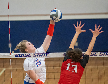 Hansen, a BYU transfer from Burley, Idaho, has 90 kills. Kayly Pau, a 6-4 sophomore from Lodi, California, has 50 kills. Wissinger, a junior from Tempe, Arizona, has 49 kills and leads with 50 blocks. Boss has 44 kills, and is averaging 11.10 assists/set and 3.1 digs/set. Alli O’Harra, a 6-3 graduate transfer from Pepperdine who is from Boise, has 40 blocks, and Hansen has 37.
