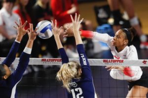 Western Kentucky is No. 3 in the NCAA in hitting percentage at .317. Lauren Matthews is hitting .400, 19th in the NCAA. Rice’s Anota Adekunla is No. 6 at .428.Â