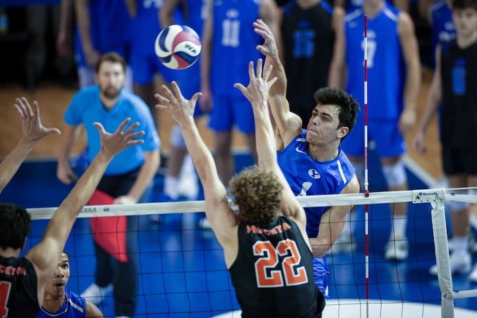 Tuesday, BYU (7-1) of the MPSF swept visiting Princeton (4-3) of the EIVA for the second straight day as the Cougars hit .370 in the 25-22, 25-18, 25-23 victory. Luke Benson had 13 kills with no errors in 20 attacks to go with an assist, an ace and two digs. Trent Moser had 11 kills. Princeton’s Nyherowo Omene had 16 kills and hit .400. The day before, BYU won 25-23, 25-19, 25-21 as Moser led the Cougars with 12 kills and Omene had 10 for Princeton …