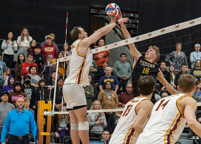 In the lone MIVA match, No. 9 Loyola Chicago (14-2, 7-0) won 22-25, 25-21, 25-17, 21-25, 15-12 at Purdue Fort Wayne (12-5, 3-4) as Parker Van Buren had 20 kills and Cole Schlothauer 17. Van Buren had two errors in 44 attacks to hit .409 and added three blocks and nine digs. Schlothauer hit .317 and had an assist, an ace, three blocks and four digs. PFW’s Mark Frazier had 12 kills, Jon Diedrich 11 and Bryce Walker 10 … The MIVA’s Lewis (10-9) swept at Maryville (7-11) as John Davis had 12 kills, hit .400, and had two assists, three aces, a block and two digs …Â