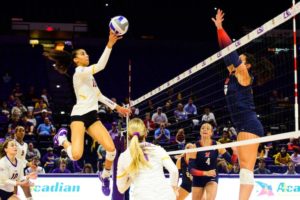 In the Sun Belt, newcomer James Madison won in five at perennial favorite Texas State as Miëtte Veldman had 25 kills with three errors in 50 attacks to hit .440. She also had an assist, two aces, nine digs and three blocks, two solo … Also in the SBC, Coastal Carolina won in five at App State as Ella Saada had 29 kills, hit .303 and had two assists, three aces, five digs and two blocks … Troy lost in five at Southern Miss, but Tori Hester had 27 kills, 11 digs and three blocks …