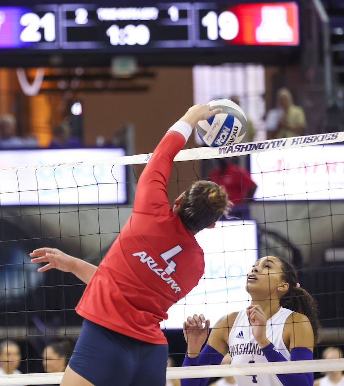 No. 15 Washington (15-5, 7-3) hit .405 and beat visiting Arizona (12-9, 2-8). Emoni Bush had 15 kills and hit .462 to go with four aces. The Huskies had 40 kills and six errors in 84 attacks … No. 20 Oregon (13-5, 7-3) beat visiting Colorado (13-7, 5-5) as outside hitters Mimi Colyer had 13 kills and Brooke Nuneviller 12 … Washington State (15-6, 7-3) hit .379 beat visiting Arizona State (10-12, 4-6) as Laura Jansen had 14 kills and Pia Timmer 13. Timmer had no errors in 28 attacks …
