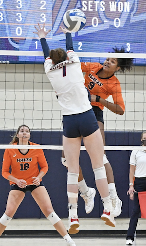 Brooke Nuneviller led with 16 kills, hit .419 and had four aces and six digs. Taylor Borup, out the last month, had four kills in 16 errorless attacks, an ace, two blocks, and nine digs.Â