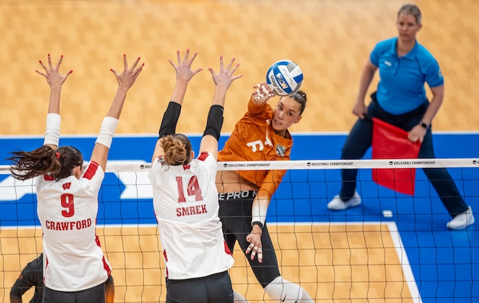 The Badgers, who had won seven in a row, hit .223. Sarah Franklin, the Big Ten player of the year, led with 13 kills, hit .163, and had seven digs and two blocks. Anna Smrek had 13 kills with one error in 22 attacks to hit .522 and had four blocks. Temi Thomas-Ailara had nine kills and a dig and Devyn Carter had four kills but hit .071 to go with a dig and four blocks.
