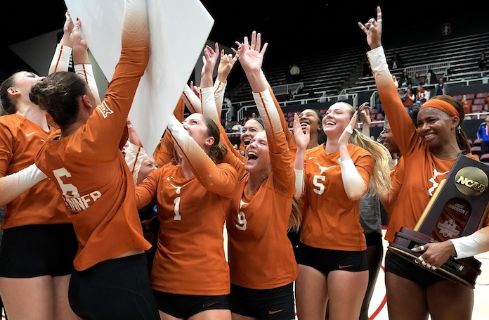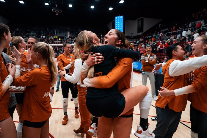 The Big 12-champion Longhorns (26-4) will return to the NCAA Divisioon I Women’s Volleyball Championship national semifinals with a chance to wrangle back-to-back NCAA titles after taking down host Stanford (29-4) in four decidedly different sets (25-16, 15-25, 25-19, 25-22) Saturday night in the regional final.
