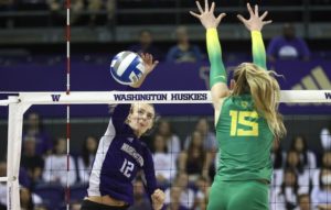 Under different circumstances, we would likely be talking about Oregon outside Mimi Colyer as a favorite to be national freshman of the year. But while she’s been outstanding, no freshman can match what Eva Hudson is doing at Purdue. And it’s easy to get less noticed on a team that has Brooke Nuneviller. Nonetheless Colyer is averaging 3.71 kills and seemingly always comes through when the Ducks need her. Nuneviller? She’s leading Oregon with 4.16 kills/set (third in the Pac-12), is hitting a career-best by far .285, and is second in digs at 3.44/set, which ranks eighth in the conference.