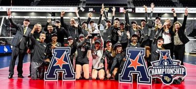 AMERICAN ATHLETIC — McKenna Melville had 25 kills and UCF (16-9), which never lost an American Athletic match this spring, battled past Temple (11-6) 25-20, 24-26, 25-13, 25-20. Melville had four errors in 60 attacks and hit .350 and had an ace and 11 digs. Tali Marmen had 14 kills and hit .462 to go with three assists, nine digs, and three blocks, two solo. Anne-Marie Watson had 13 kills, hit .393, and had five blocks.