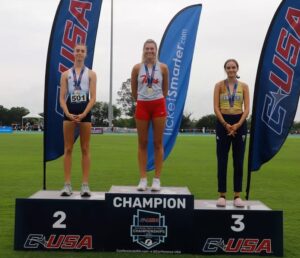 HJ GOLD FOR ISENBARGER: Katie Isenbarger, the high-flying 6-foot middle who finished her fifth year on the court last fall, is still going strong in track and field for Western Kentucky. On Sunday she won the Conference USA women’s high jump. Isenbarger cleared the bar at 1.79 meters (5 feet, 10.5 inches). She also won the title earlier this year at the C-USA indoor meet. In March, our Chuck Curti profiled the product of Zionsville, Indiana.