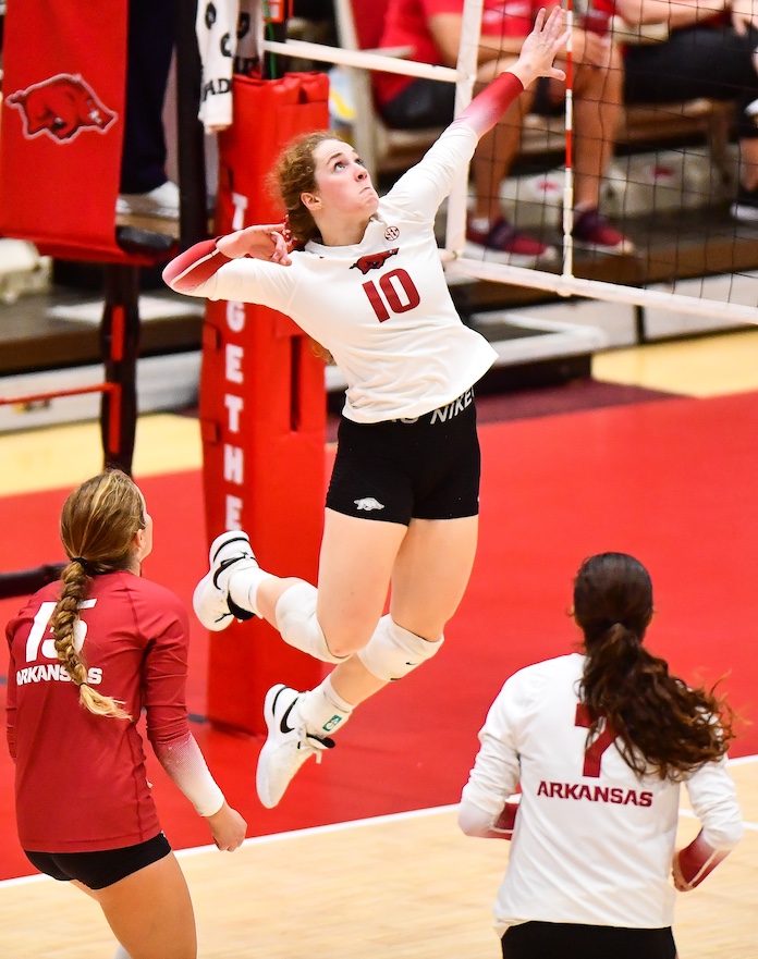 Gillen leads Arkansas with 240 kills, an SEC-best 4.21/set, and is hitting .293. with 163 digs.
