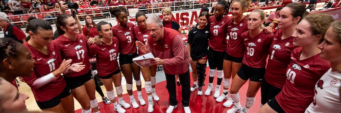 This story actually has a back story, but ultimately it’s about Arkansas, a simply scrappy, undersized, fun team to watch that happens to be really good — No. 13 in the VolleyballMag.com Super 16 Media Poll — and one that is riding a 12-match winning streak and just one of two SEC teams still unbeaten in league play.
