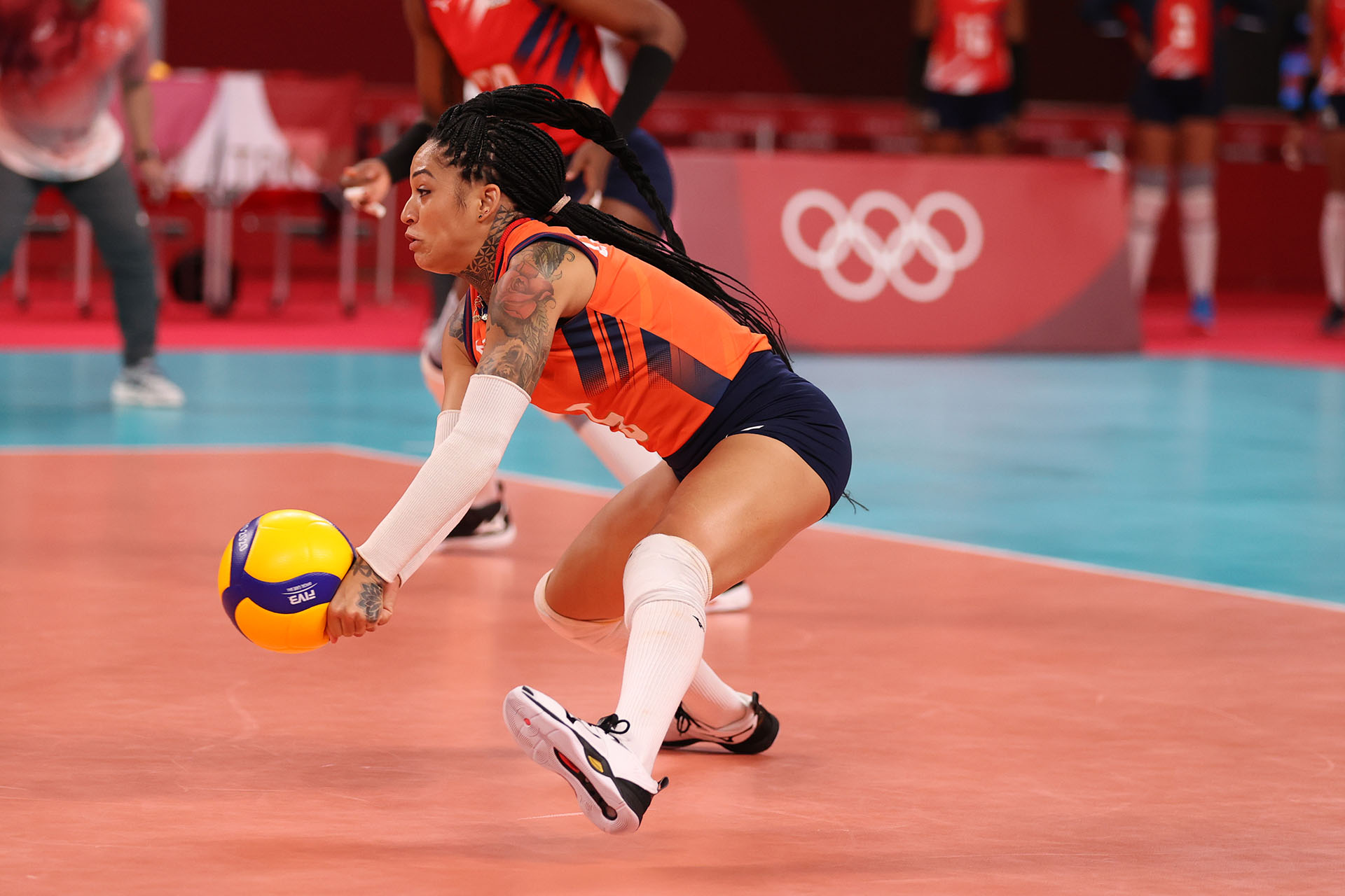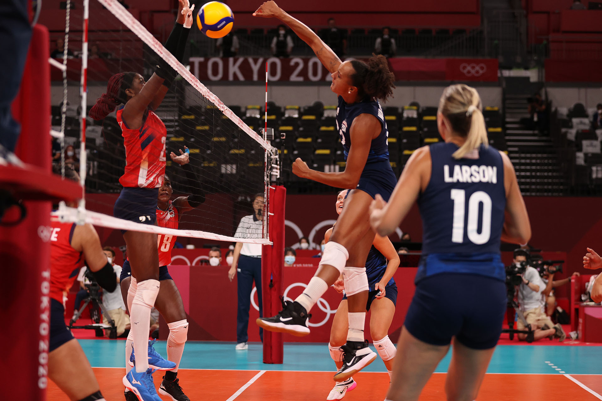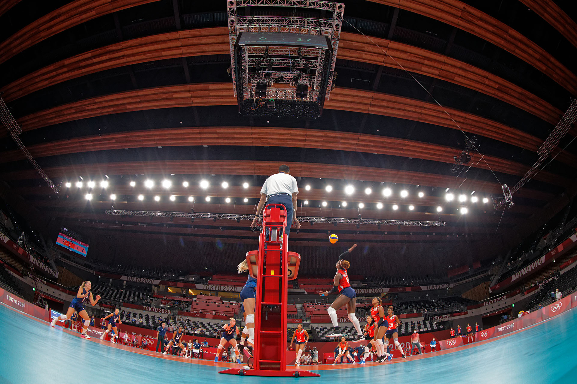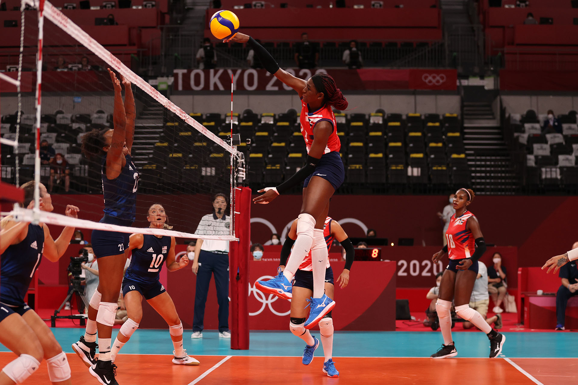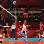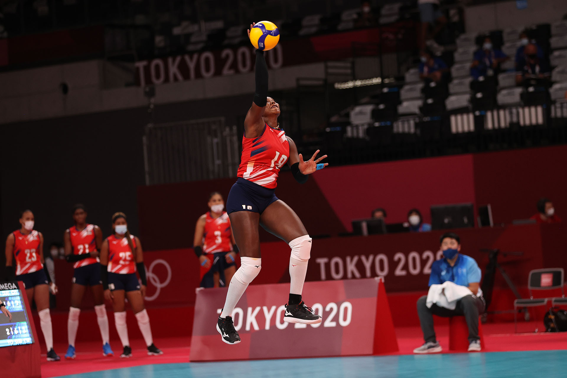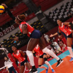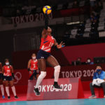 The Dominican Republic’s Bethania de la Cruz takes a swing in Ariake Arena/Ed Chan, VBshots.com