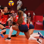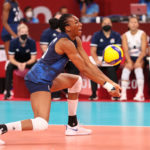 Brazil’s Alvaro Filho digs during the Tokyo Olympics/Ed Chan, VBshots.com