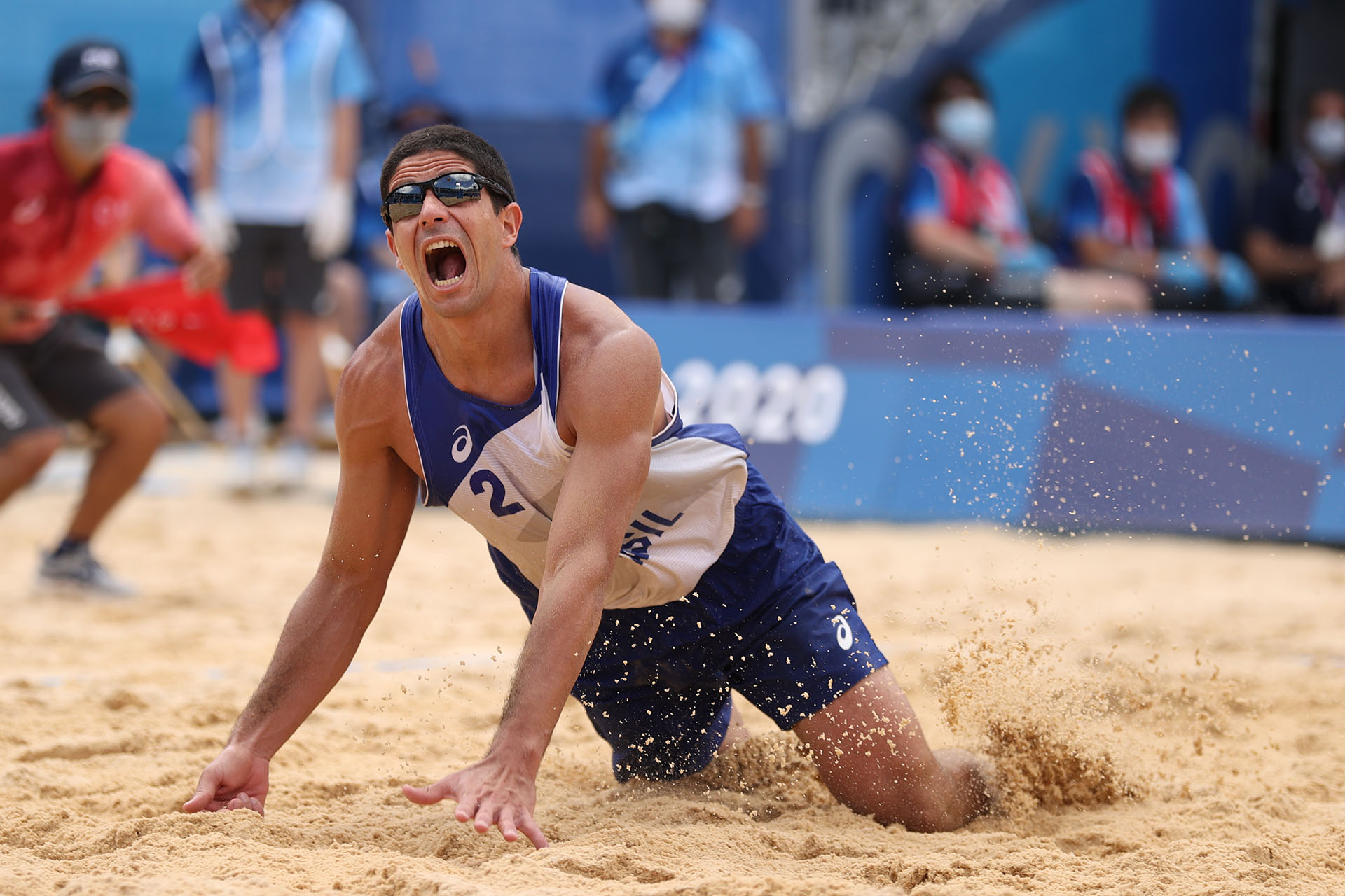 Alvaro Filho digs in a spray of sand/Ed Chan, VBshots.com