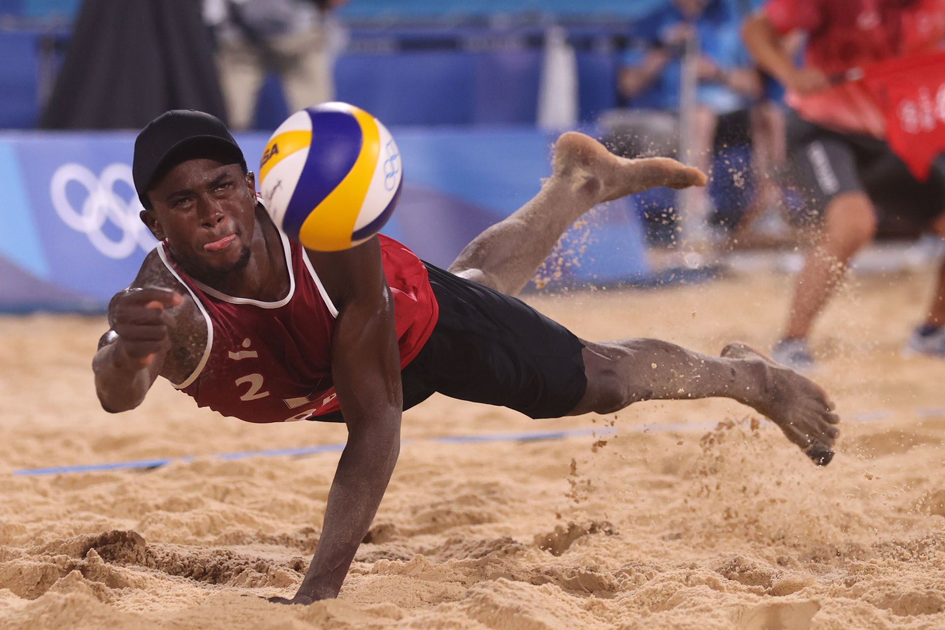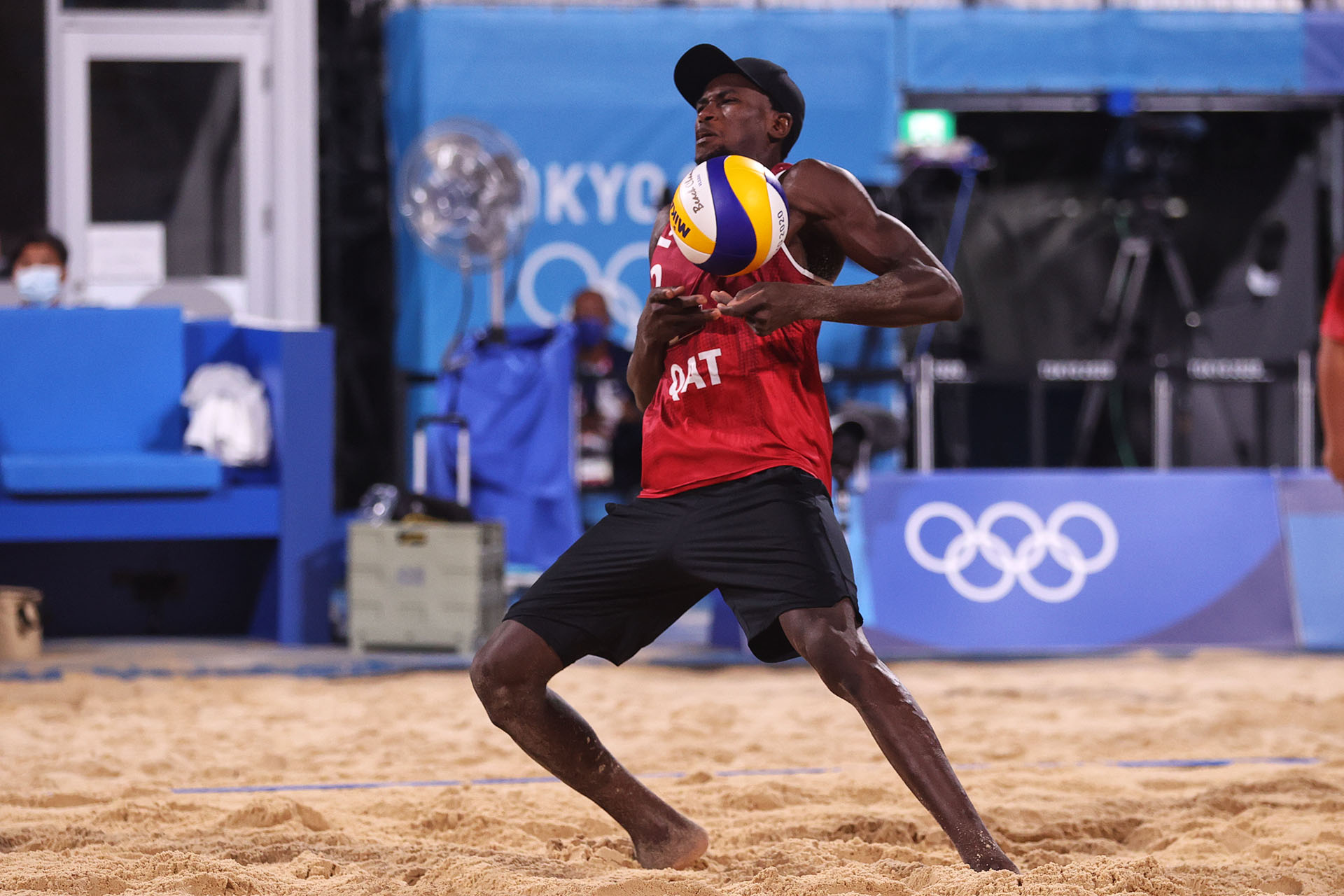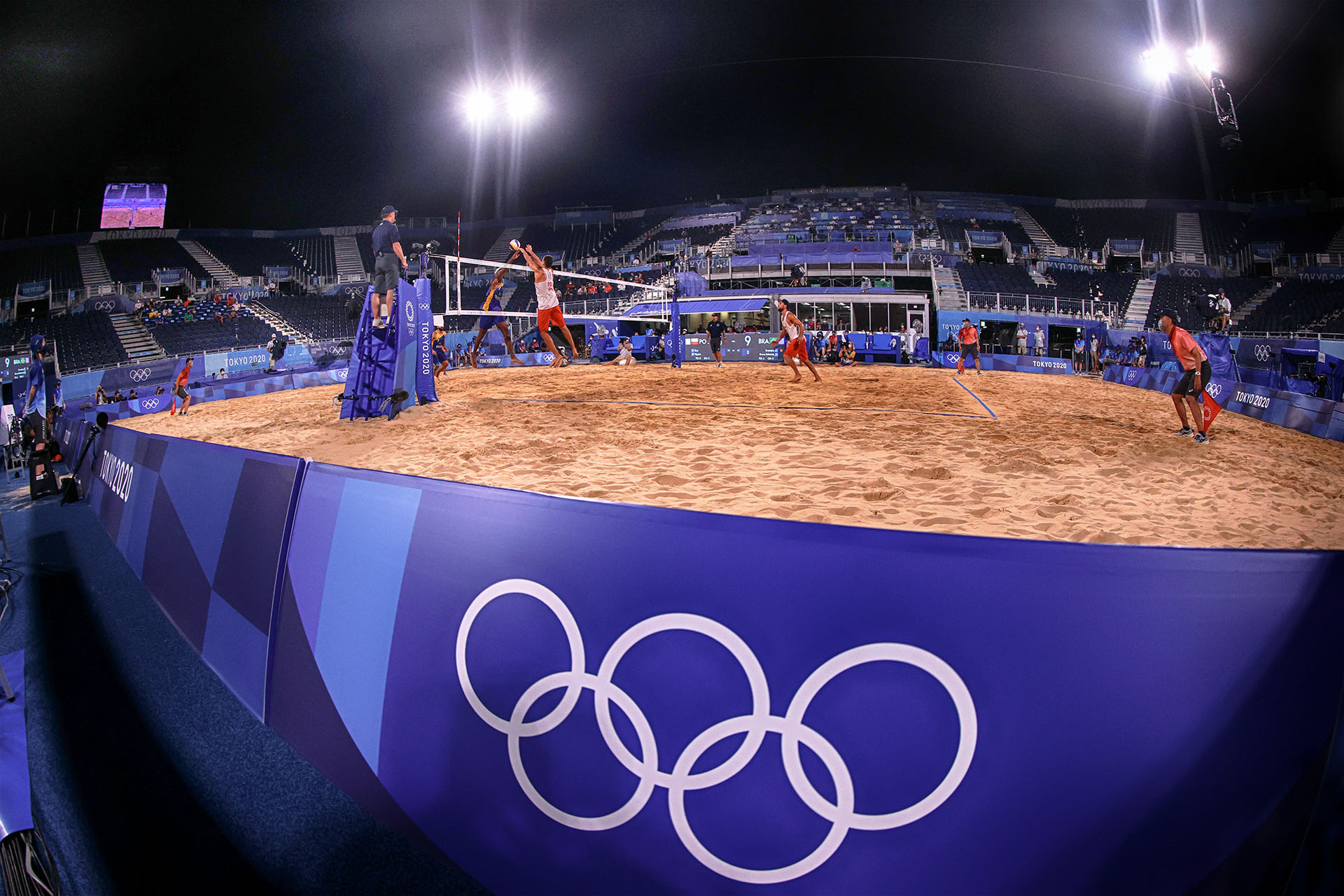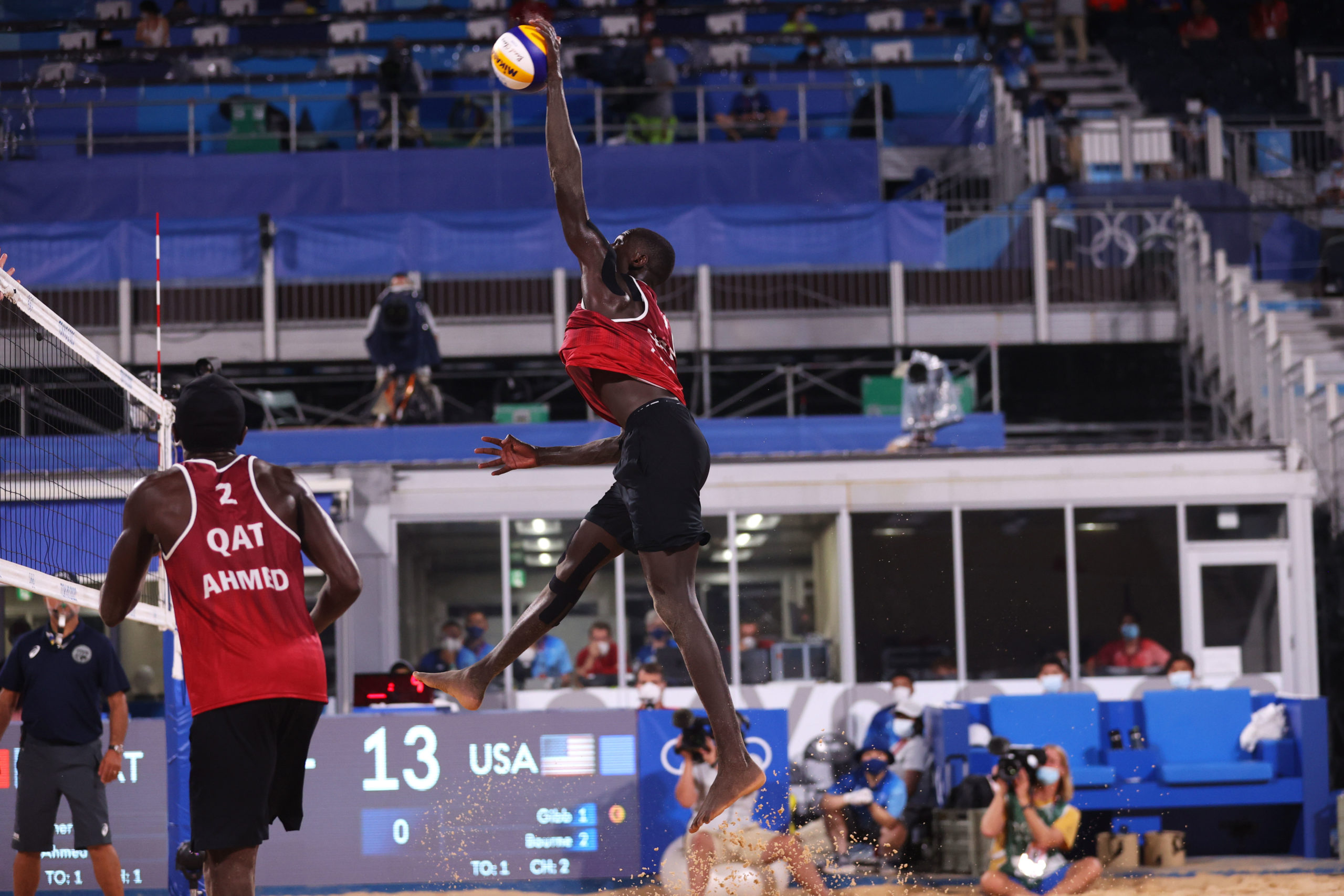 At Ariake Arena, he shot the USA men versus Brazil, took a break, and headed back to the beach for the last two matches of the day, including Jake Gibb and Tri Bourne playing Ahmed Tijan and Cherif Samba of Qatar: