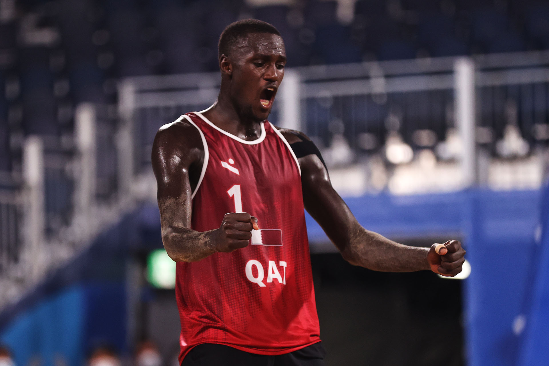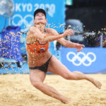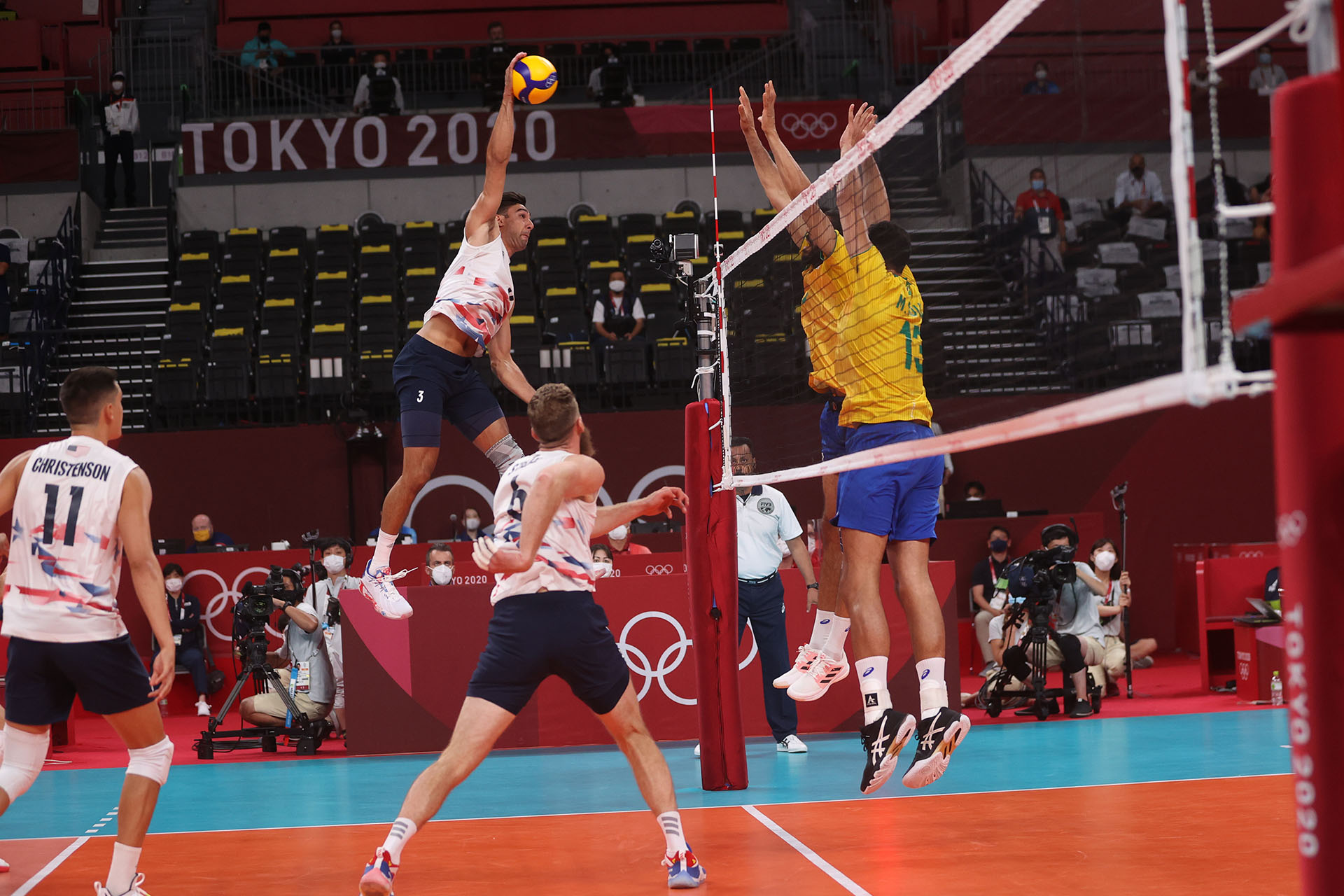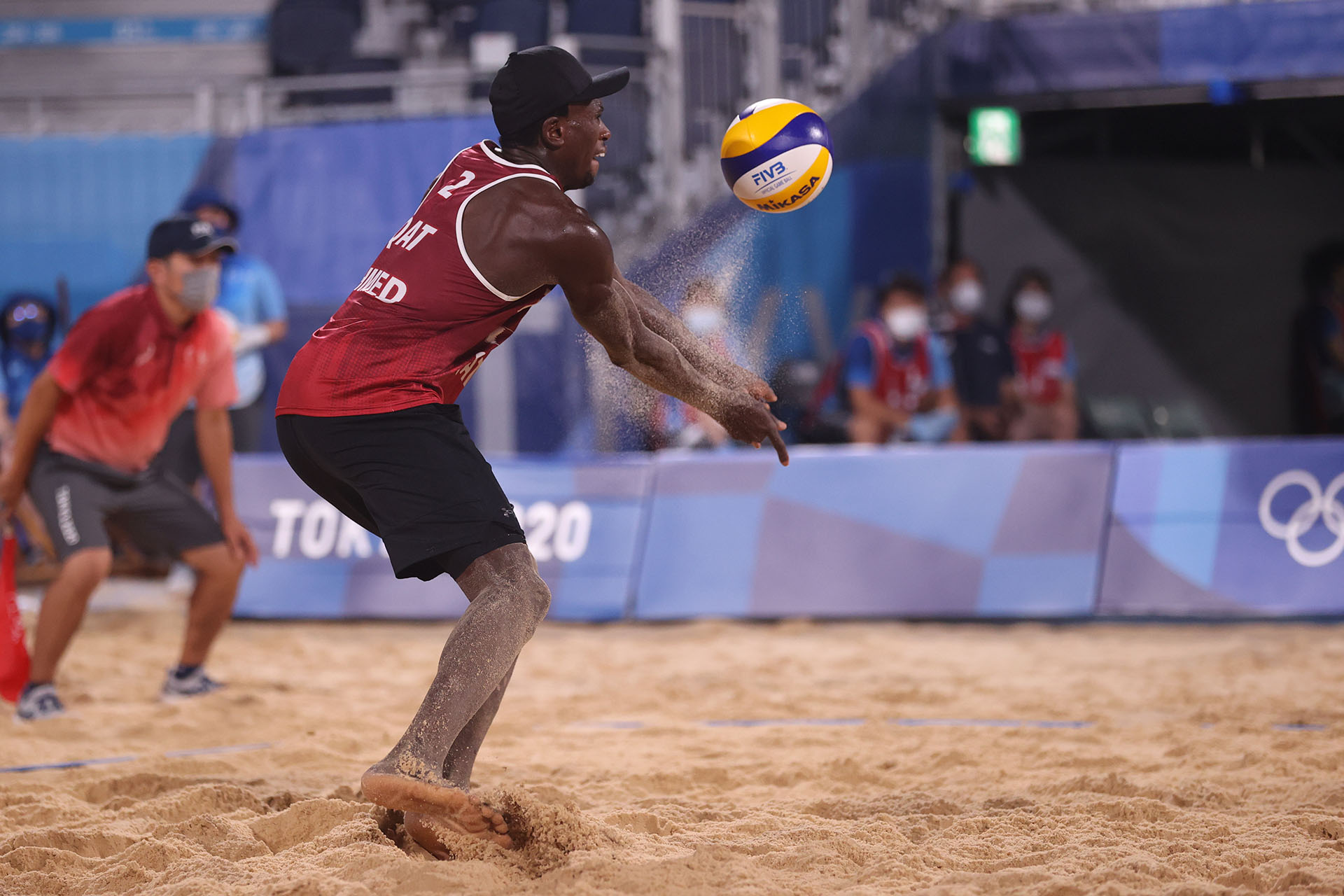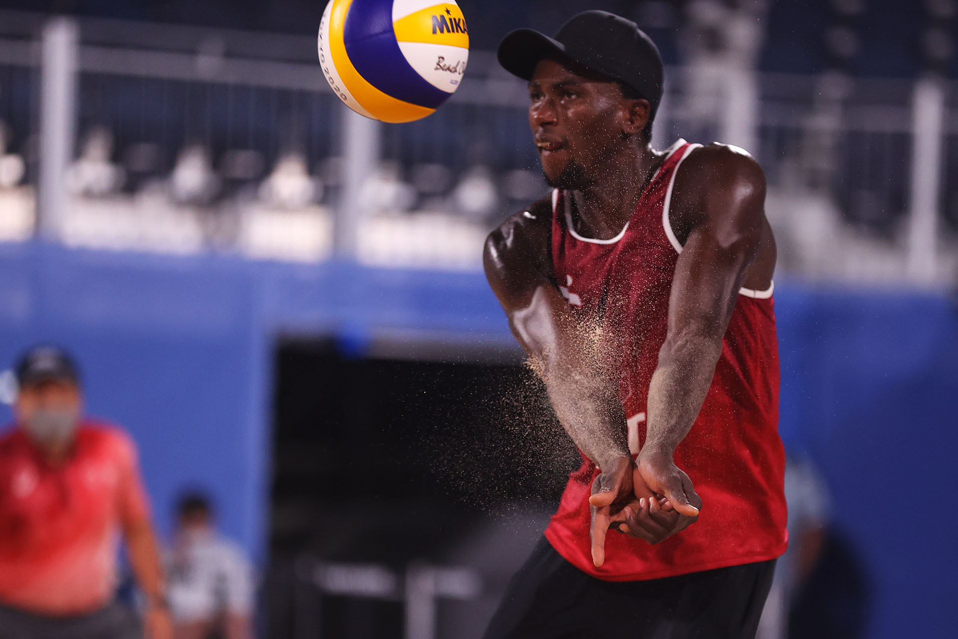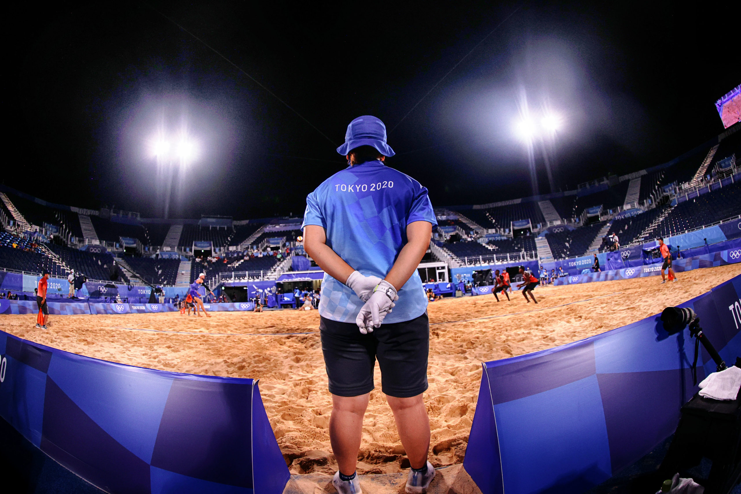 At Ariake Arena, he shot the USA men versus Brazil, took a break, and headed back to the beach for the last two matches of the day, including Jake Gibb and Tri Bourne playing Ahmed Tijan and Cherif Samba of Qatar: