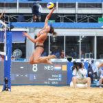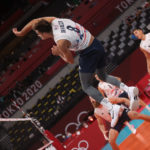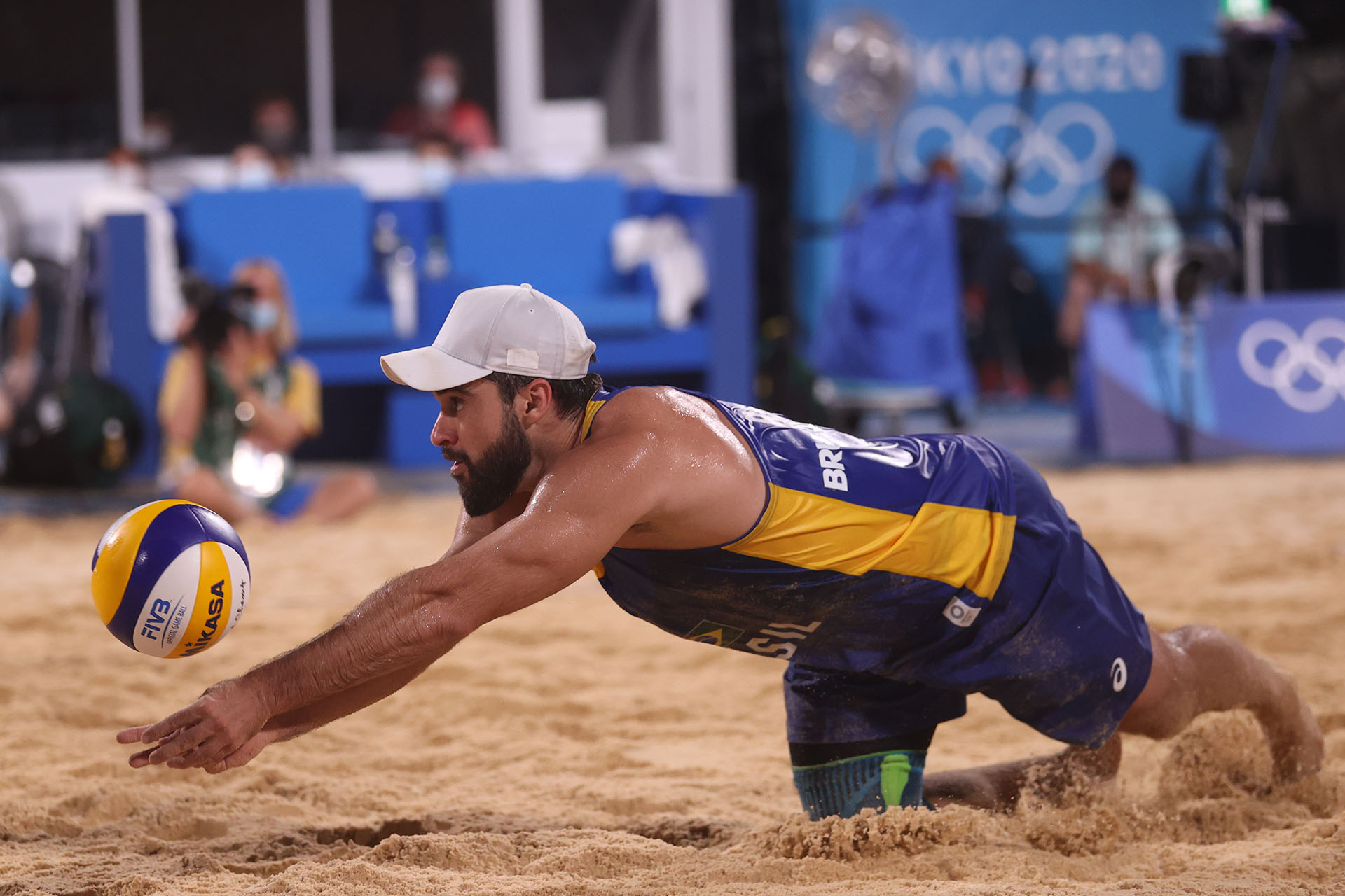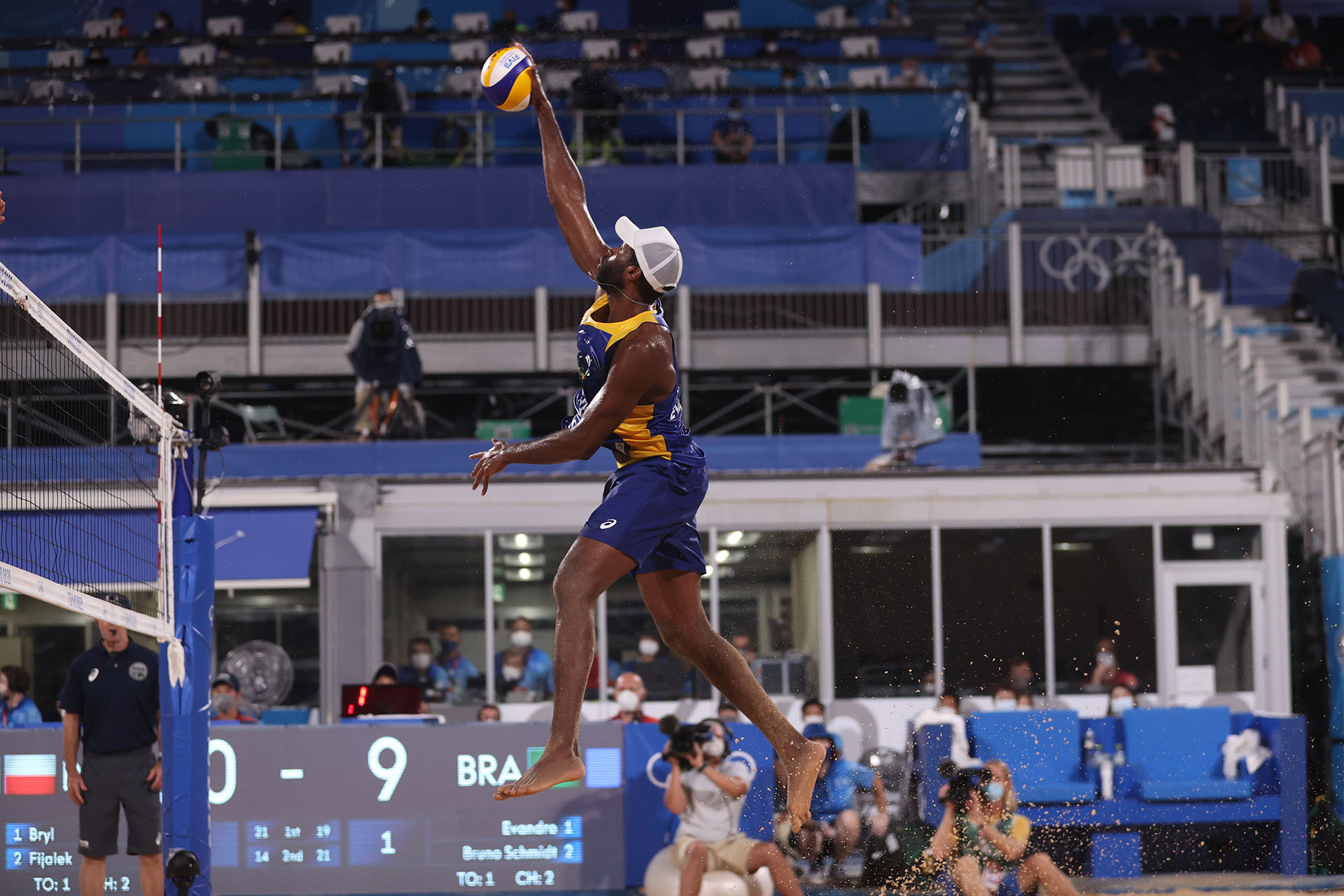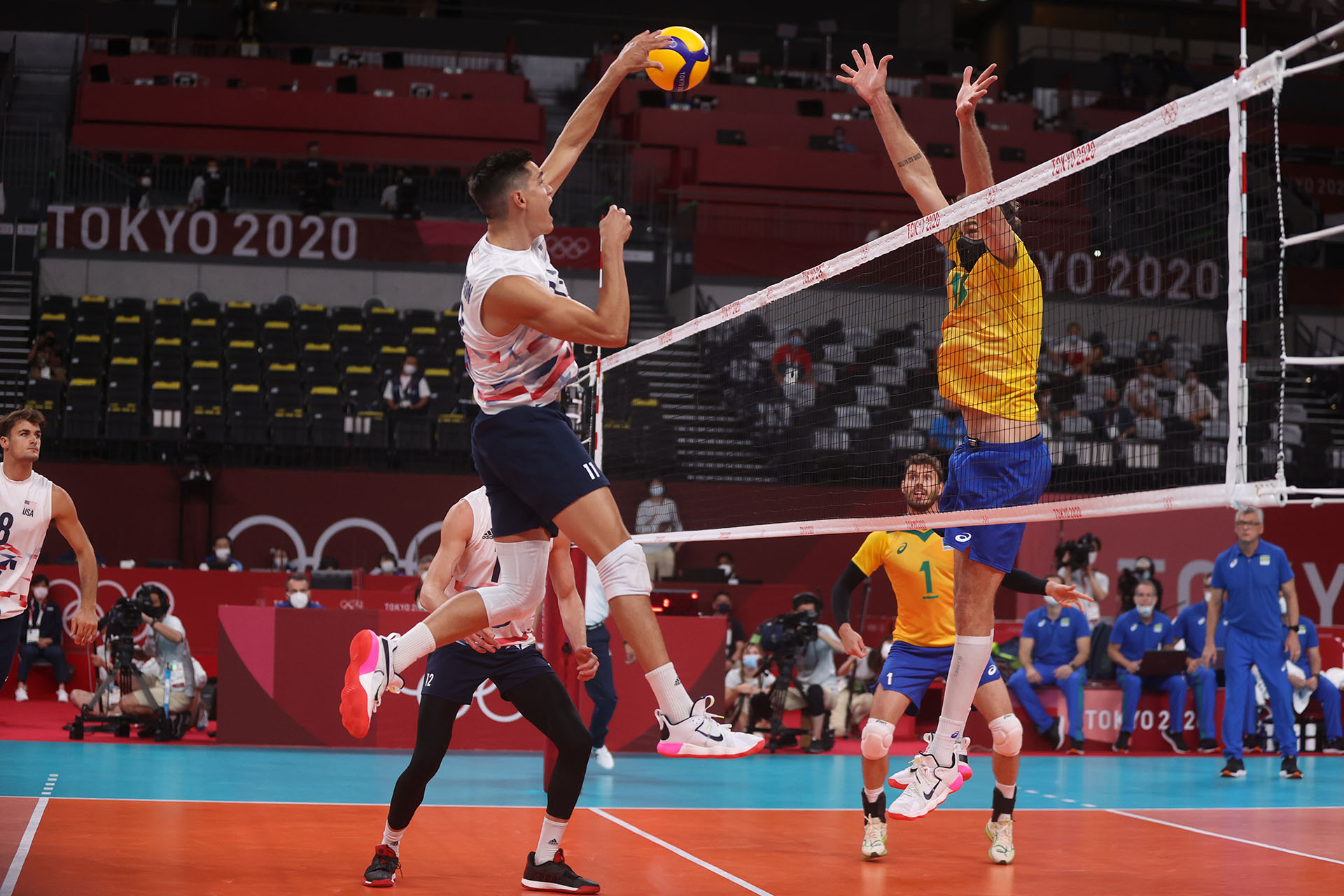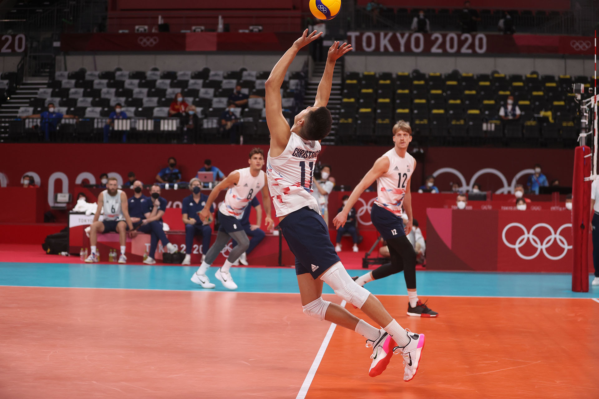 At Ariake Arena, he shot the USA men versus Brazil, took a break, and headed back to the beach for the last two matches of the day, including Jake Gibb and Tri Bourne playing Ahmed Tijan and Cherif Samba of Qatar: