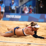 Laura Ludwig turns a dig into offense in the Tokyo rain/Ed Chan, VBshots.com