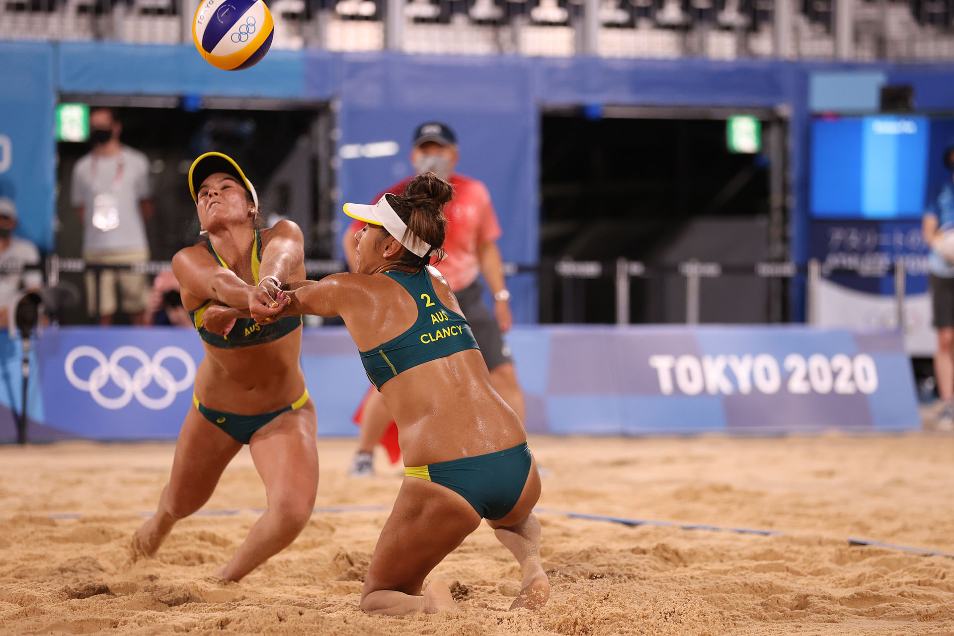 Australia’s Mariafe Artacho and Taliqua Clancy pass the middle/Ed Chan, VBshots.com