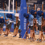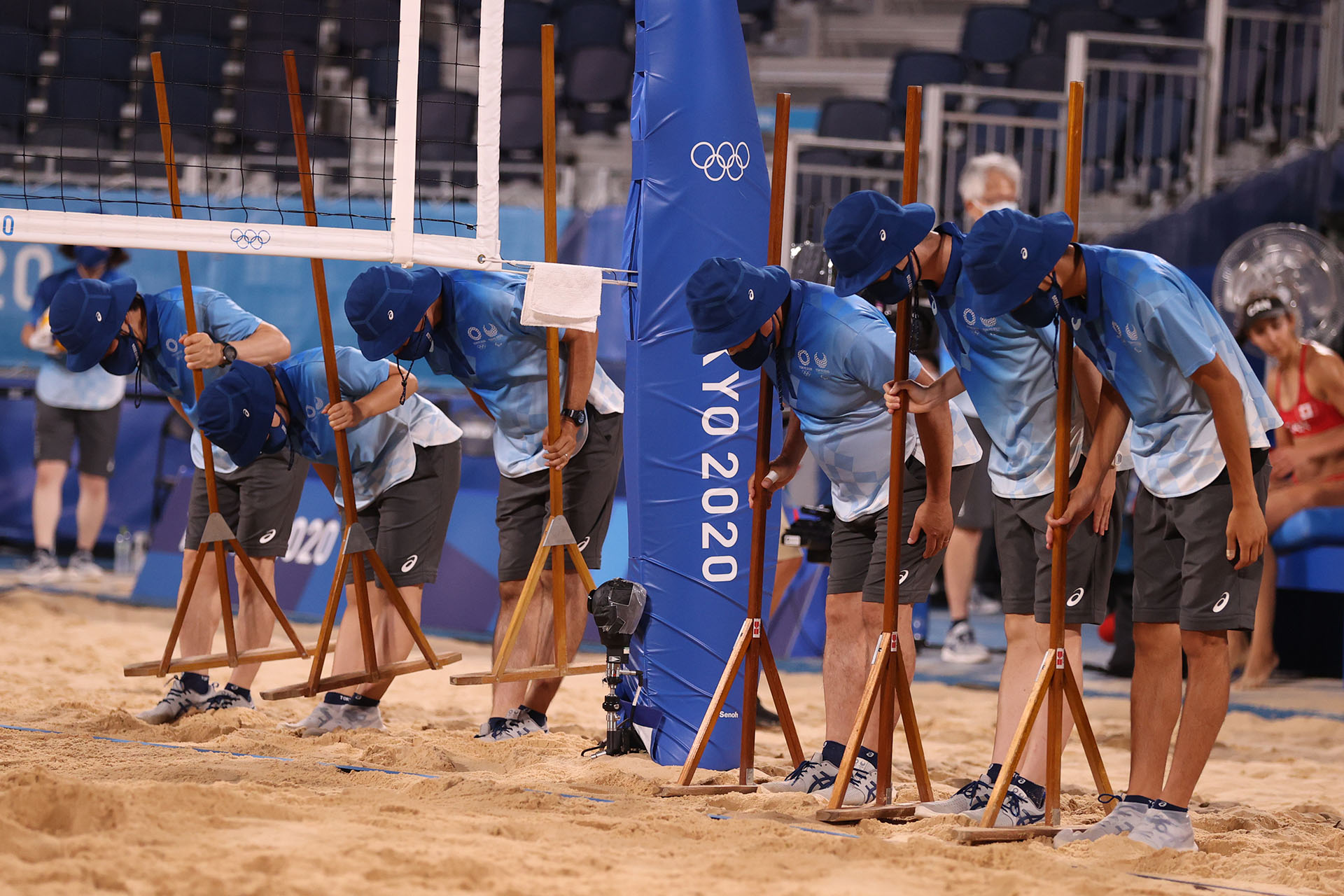 The Tokyo Olympics beach volleyball was played through a little rain, a little wind, and produced some surprising results Tuesday at Shiokaze Park.