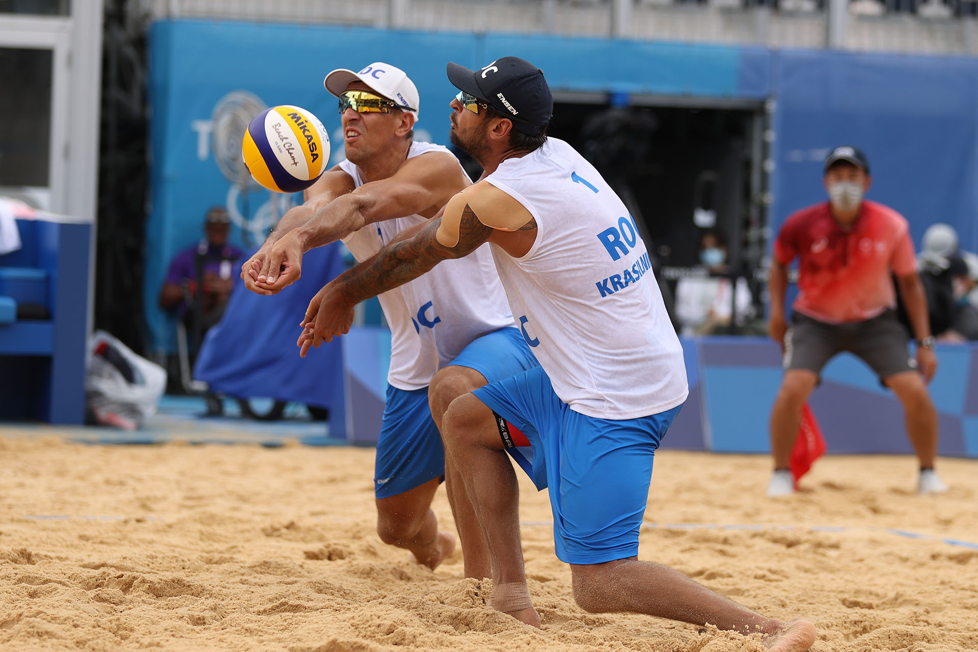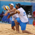 ROC’s Oleg Stoyanovskiy and Viacheslav Krasilnikov pass the middle/Ed Chan, VBshots.com