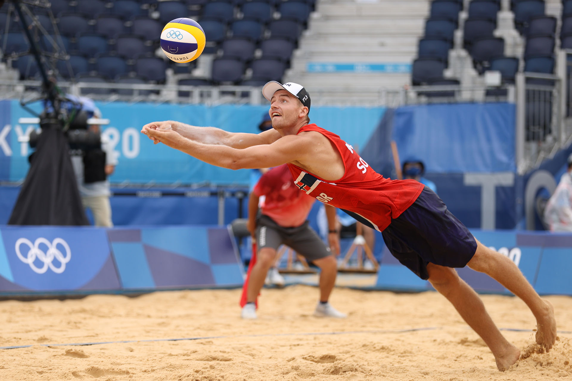 Norway’s Christian Sorum dives for a shot/Ed Chan, VBshots.com