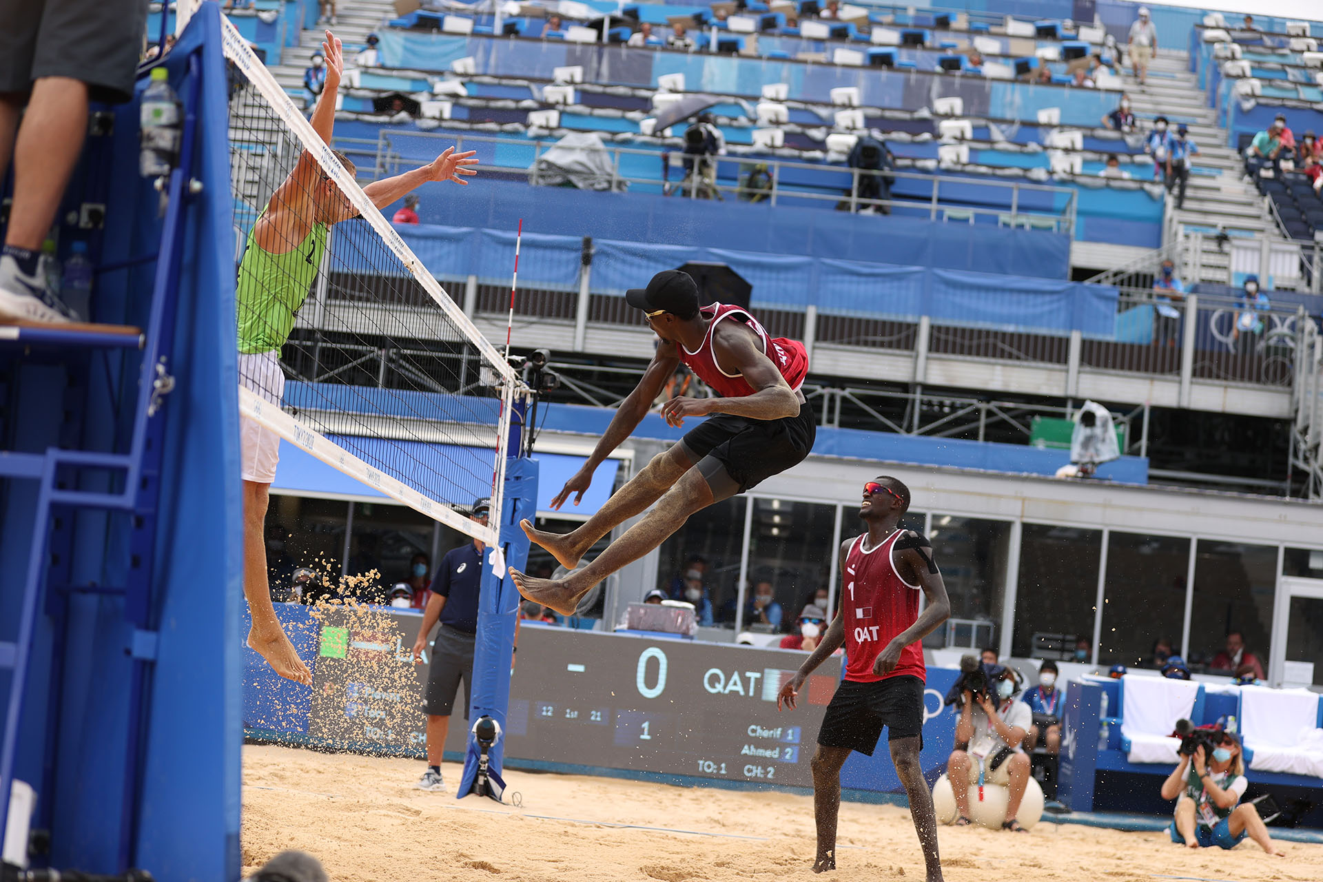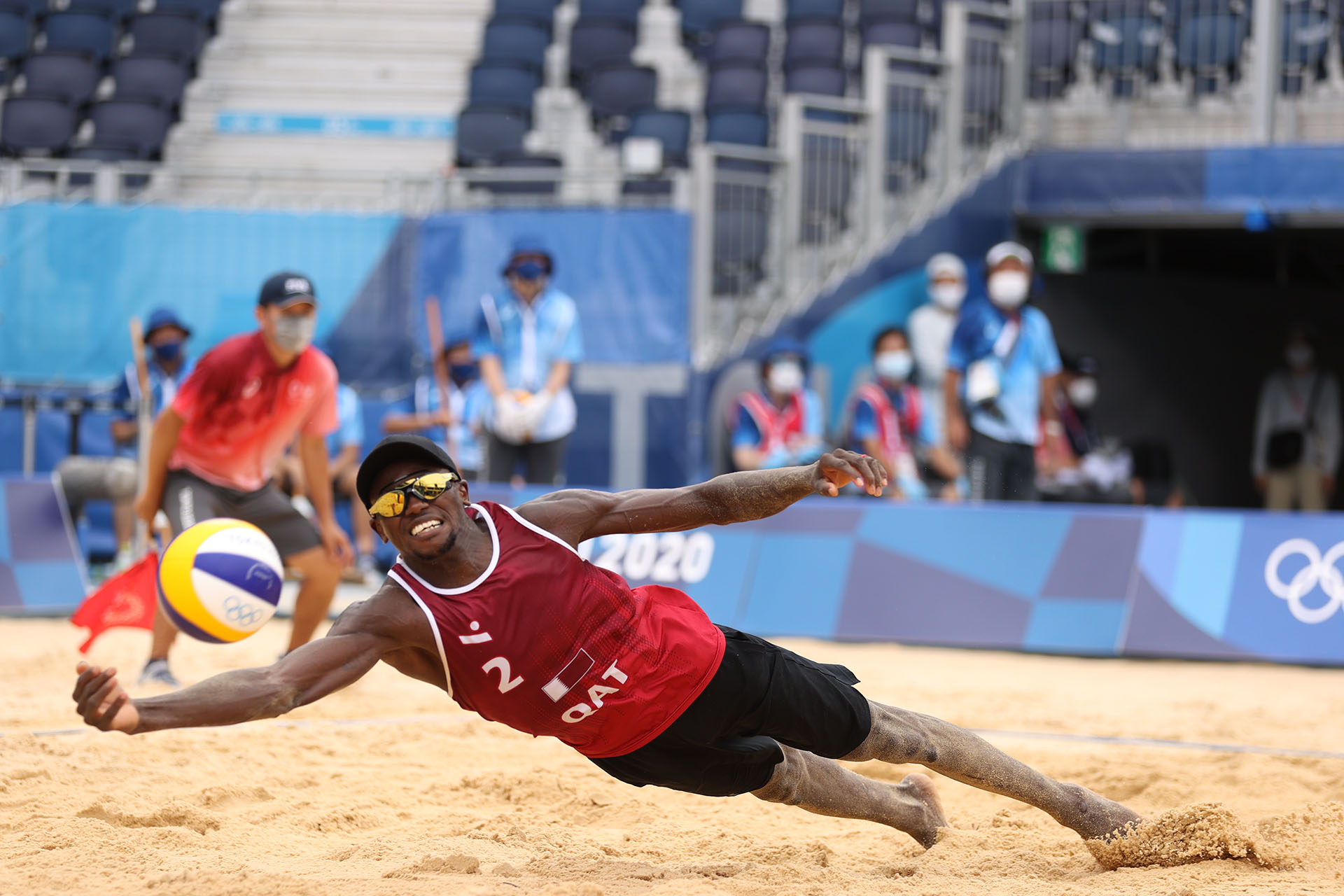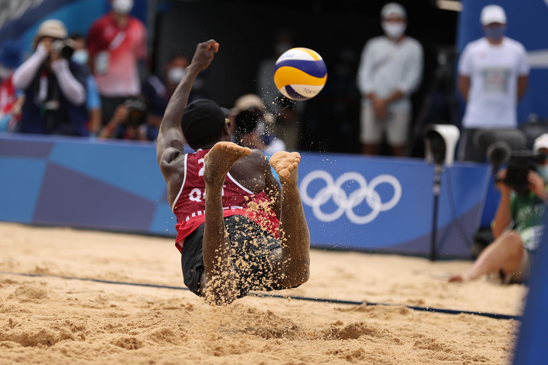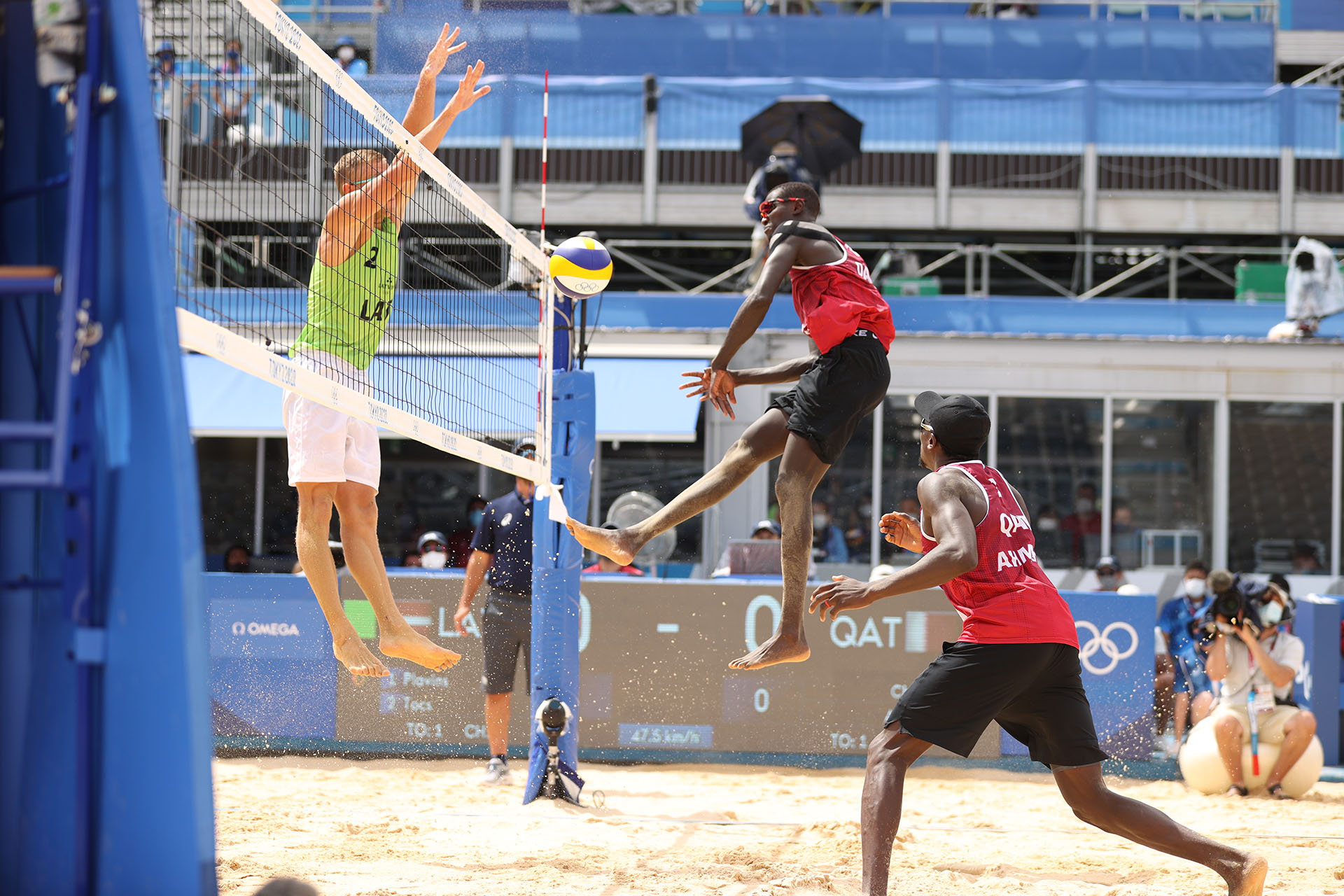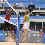 Ahmed Tijan of Qatar kicks up sand/Ed Chan, VBshots.com
