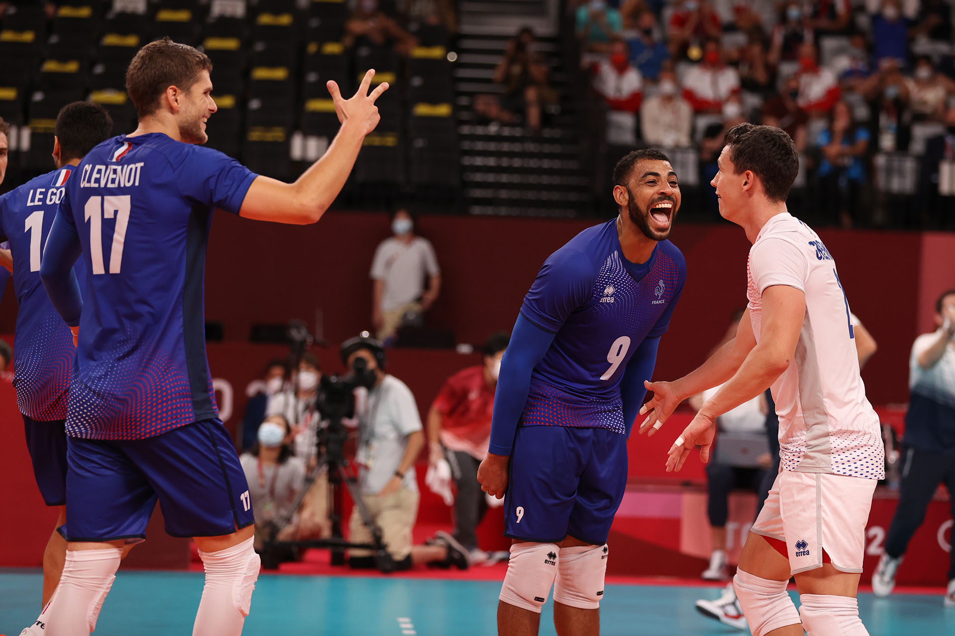France’s Earvin Ngapeth cheers at Jenia Grebennikov/Ed Chan, VBshots.com